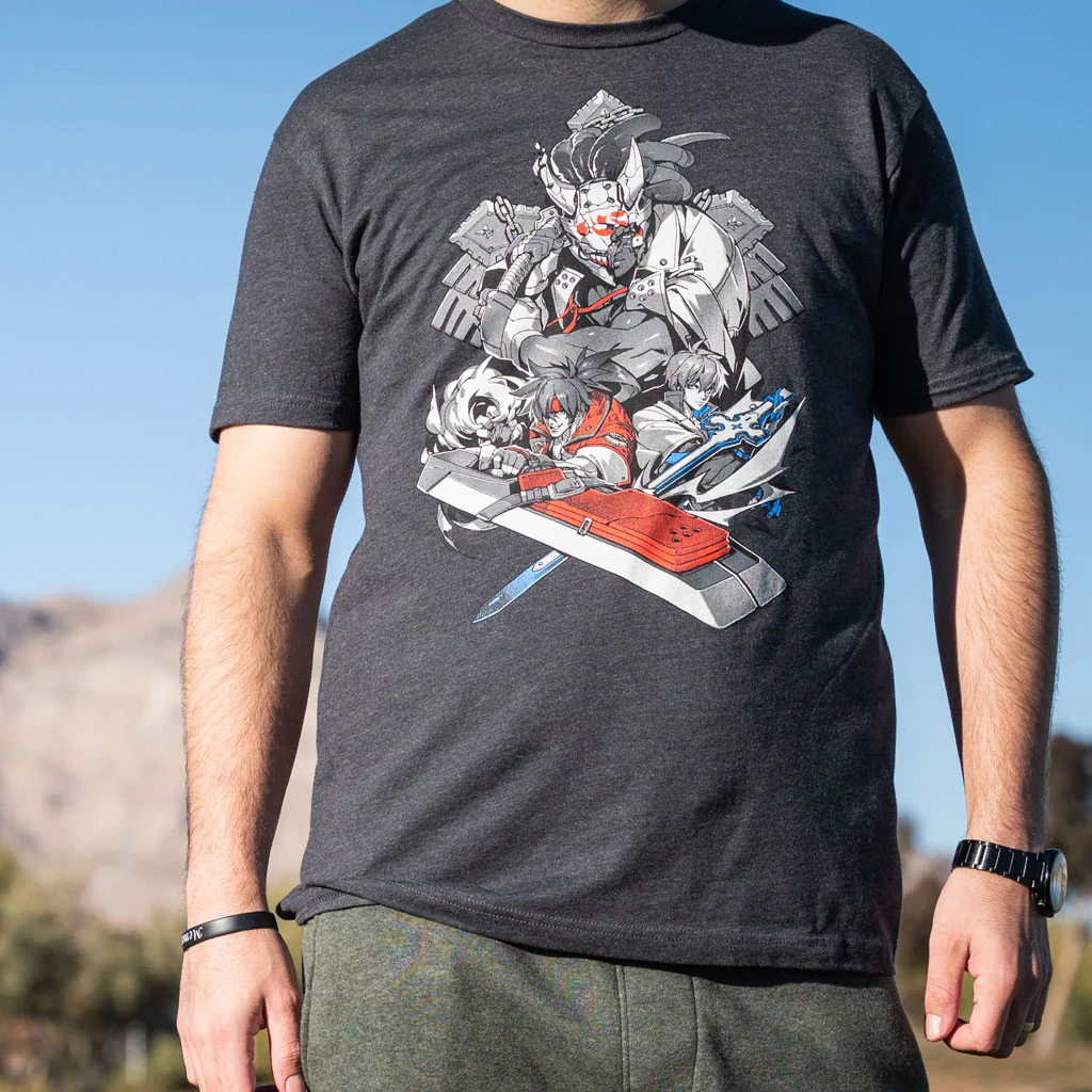 Here comes daredevil! Guilty Gear Strive has arrived at Eighty Sixed with this rockin’ shirt featuring Sol, Ky and newcomer, Nagoriyuki! No use fighting it, this is the perfect design to break out while grinding to reach the celestial floor!