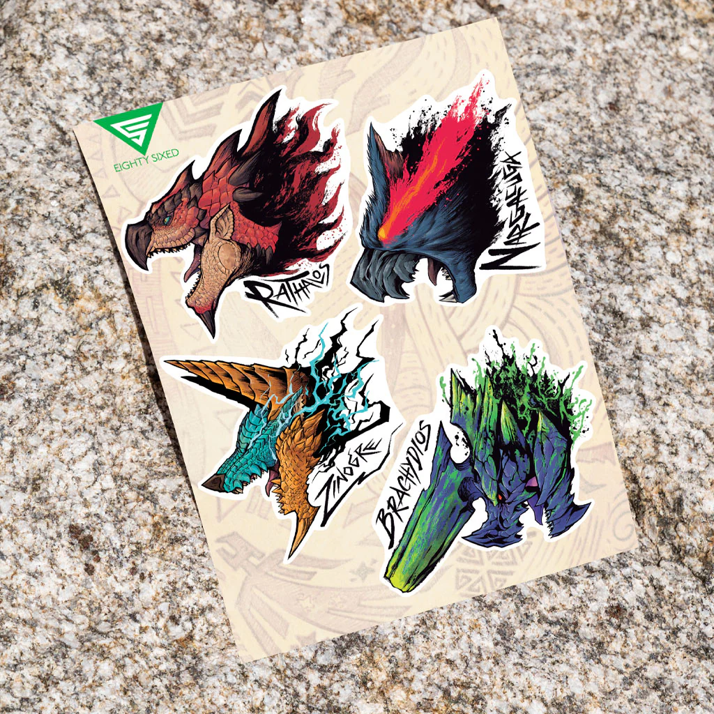 Feel the fury of the dangerous Dragons and Wyverns of the New World! This exclusive double pack of Monster Hunter: World stickers carries the might and majesty of these furious monsters in such gorgeous detail, you can almost hear them roar. They're the perfect thing to add a touch of ferocity to your gear, or to track your hunting triumphs!